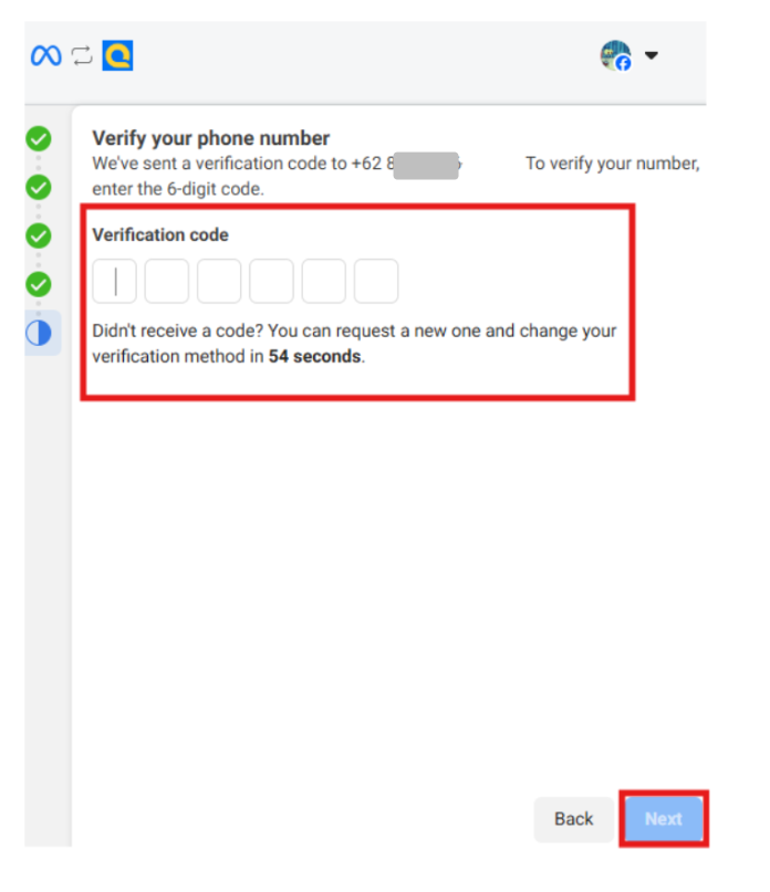 Enter the code you receive via Text Message (SMS) / Phone Call (Mobile Phone) and click “Next”, as shown below.