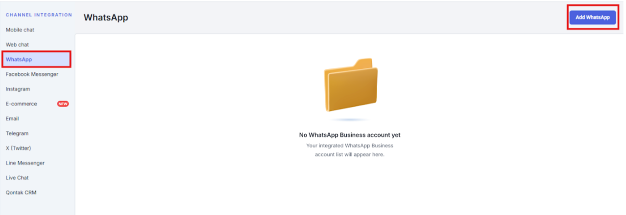 On Qontak Omnichannel, users with the Admin role can integrate their Qontak account with WhatsApp through the Channel Integration menu. Through this menu, you can create a Facebook Business Manager account (or Meta Business Account) and then integrate Qontak with the WhatsApp Business API (WABA) from a previously verified Facebook Business Manager.