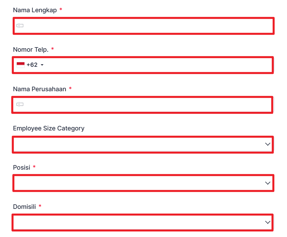 Fill in the following details: Full Name, Phone Number, Company Name, Employee Size Category, Position, and Domicile.