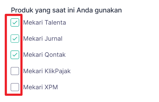 If you are a Mekari product user, check the Mekari products you currently use. If not, skip this step.