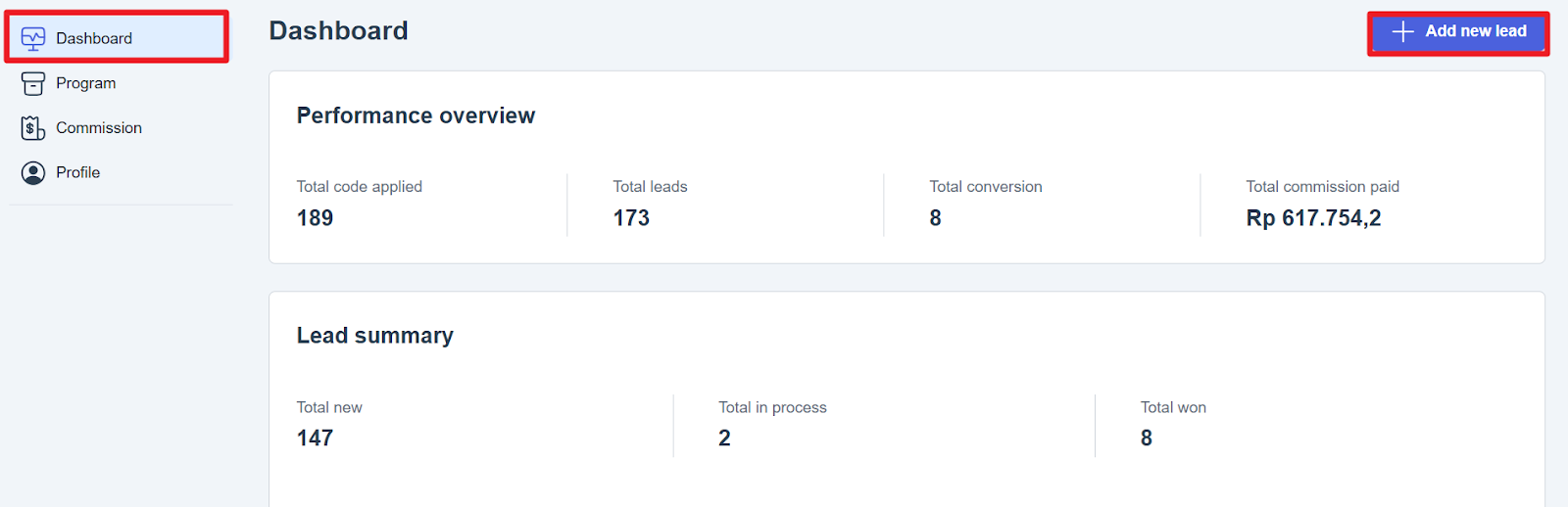 After registering yourself on the Mekari Partner Platform (MPP), the next step in your referral journey is to register your leads. Leads refer to potential clients or prospects who are interested in using Mekari products.