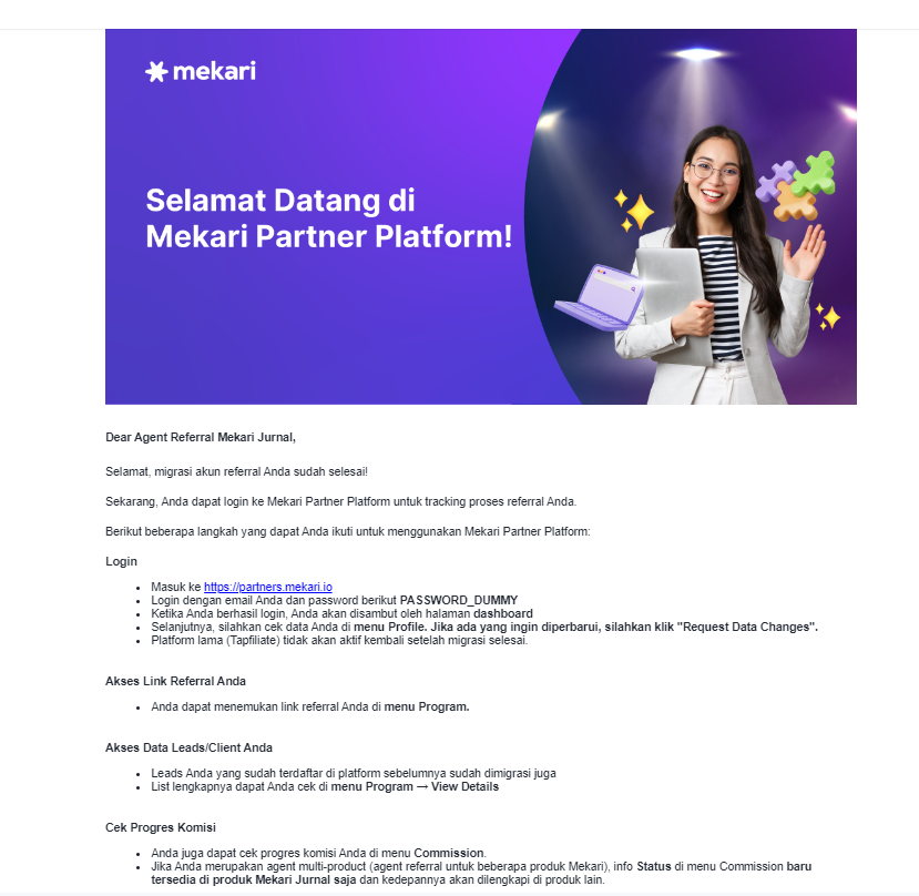 9. Once registration is complete, you will receive an email with the subject “Welcome to the Mekari Referral Program!”