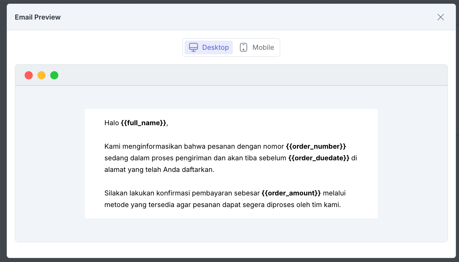 Mekari Qontak provides a Variables feature to make template content more interactive and personal. Variables allow you to display different data for each recipient, such as: