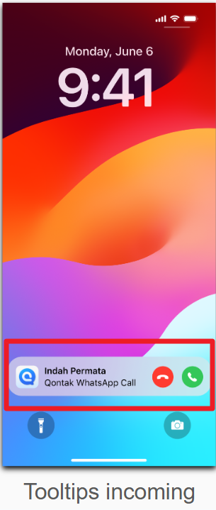 When the Qontak Chat application is inactive (closed) and the mobile phone is in a lock screen state, the call widget will appear as shown in the image above. |