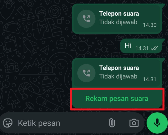 From the customer’s perspective, if the call is declined, the customer will see a "Rekam pesan suara" or “Record Voice Message” button.