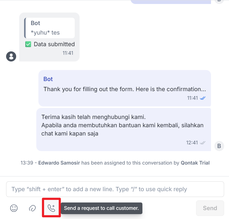Direct Calls from Qontak Omnichannel: Make calls directly from Qontak Omnichannel after receiving customer consent.