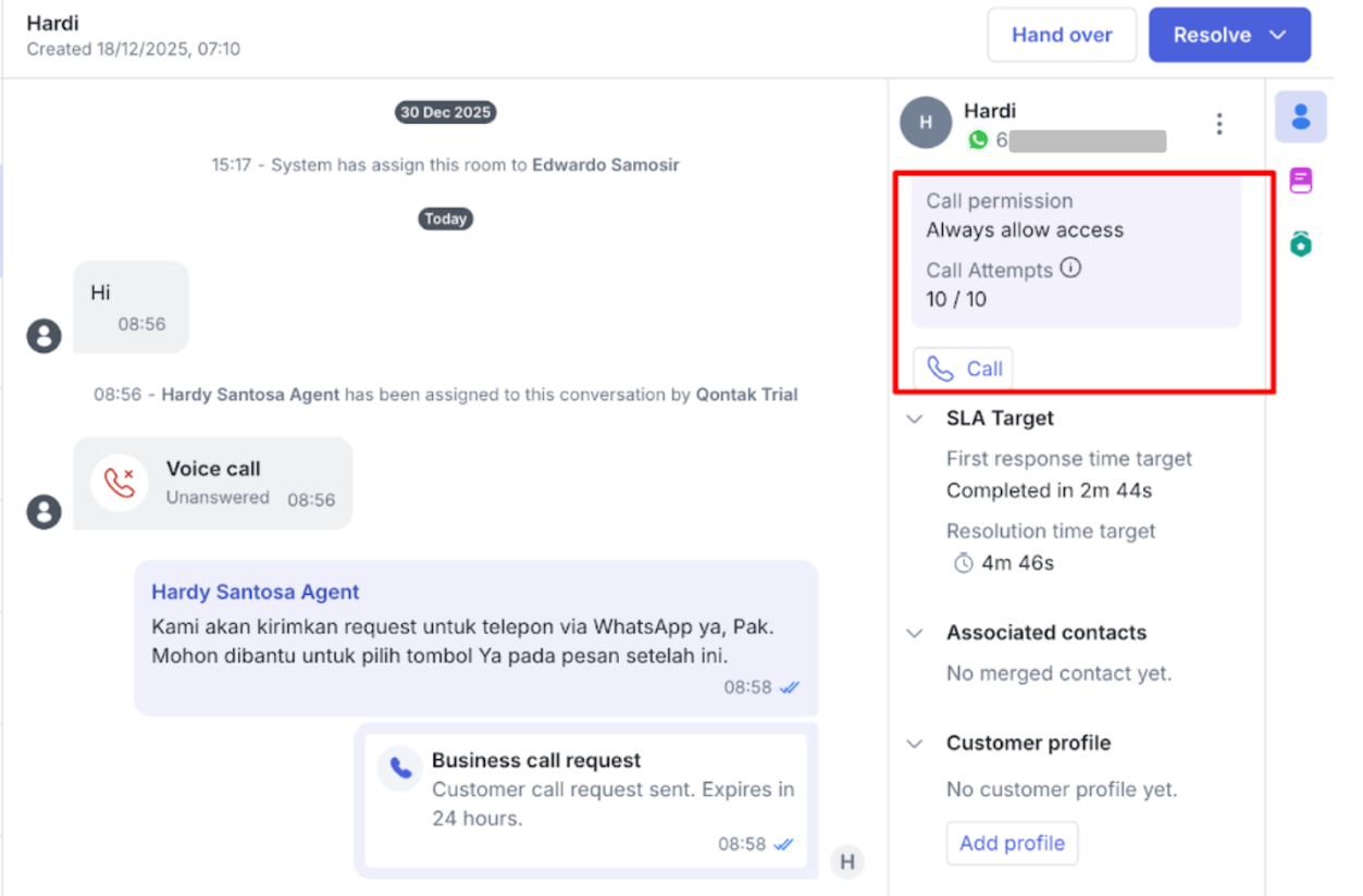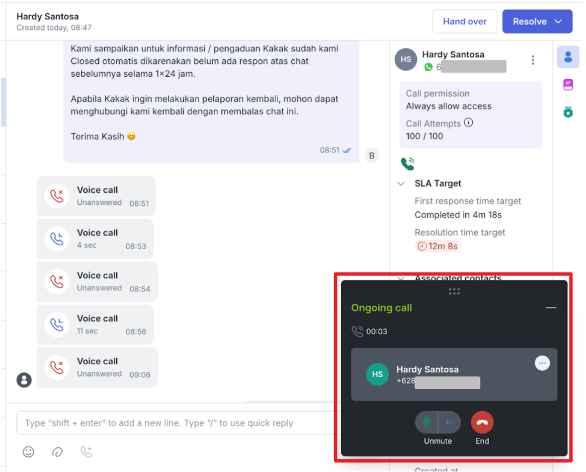 2. How to Respond to WhatsApp Call Inbound in Mekari Qontak
