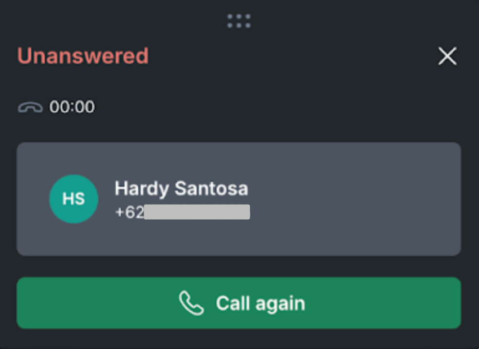 - In addition, you can move the position of the call widget by clicking the six-dot icon below. - Below is the display shown when the call is not answered.