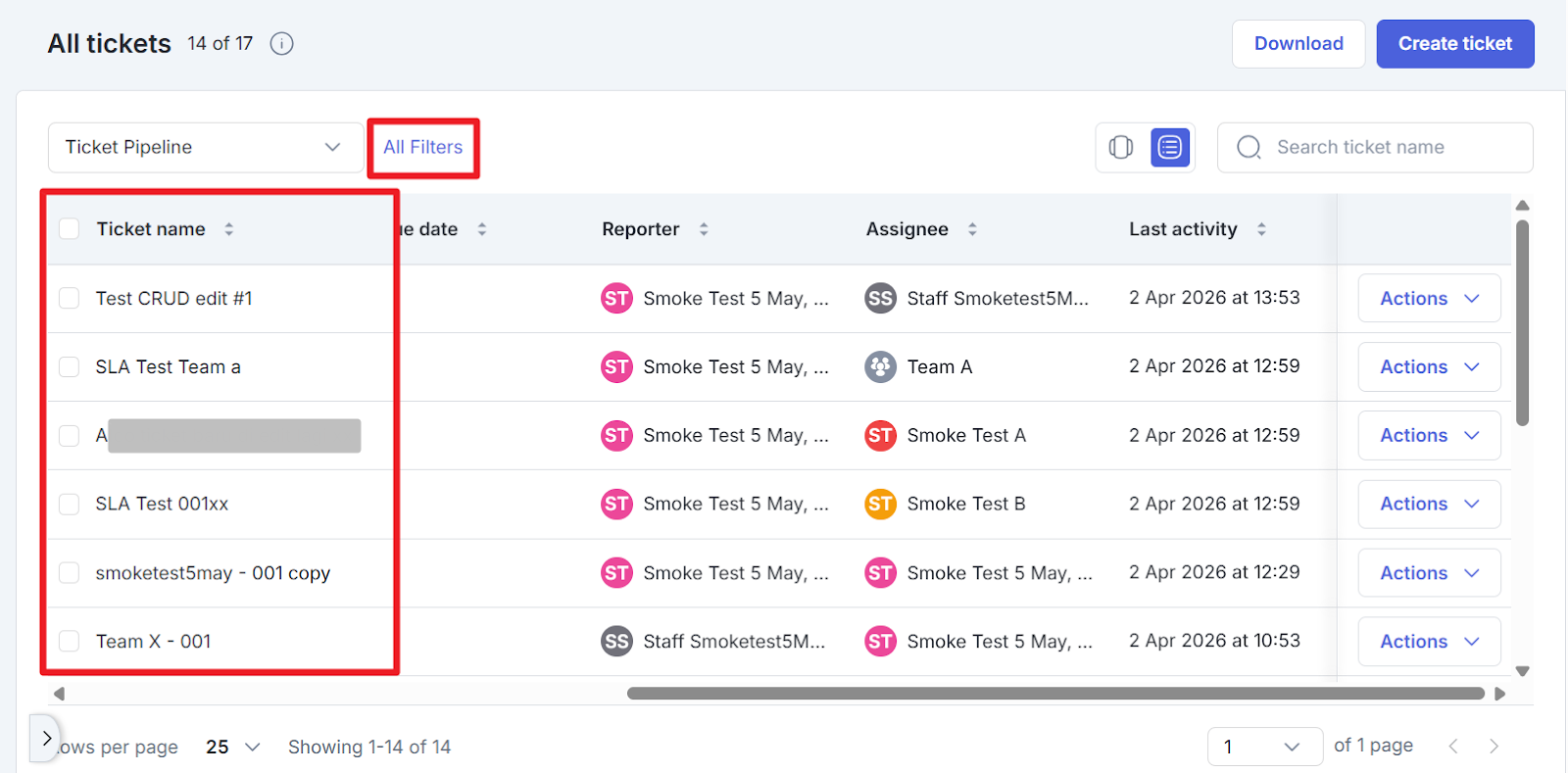 3. On this page, you can monitor all tickets in Qontak CRM. You can use the “All Filters” feature to perform further filtering.