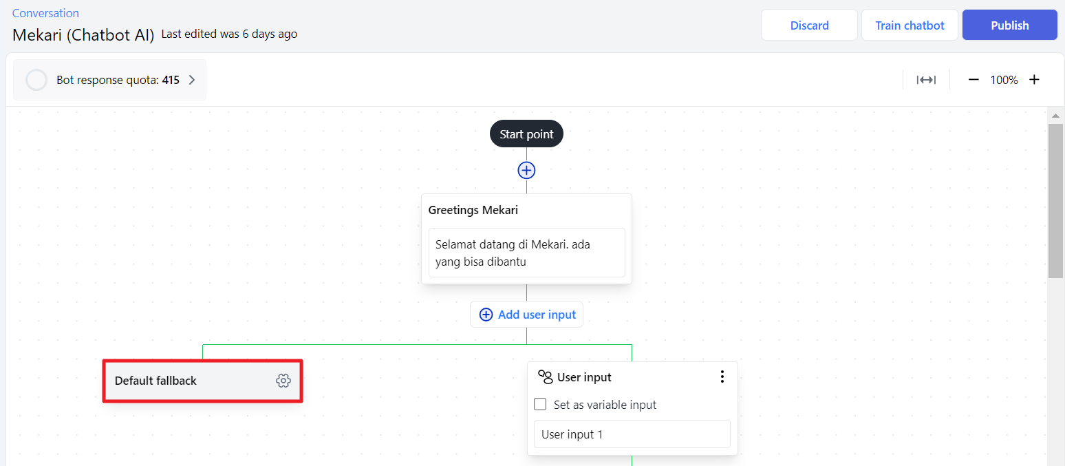 Setelah mengatur knowledges dan instruksi kepada AI, selanjutnya Anda dapat mengaktikan AI pada percakapan yang telah Anda buat pada menu Chatbot. Berikut langkah-langkahnya.