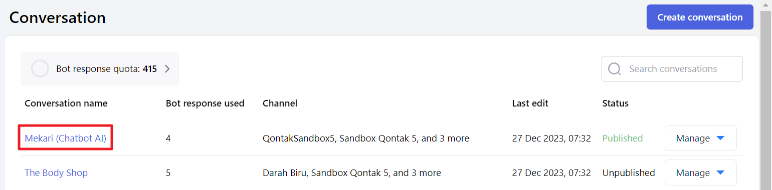 Dan pilih Conversation yang ingin Anda terapkan AI.