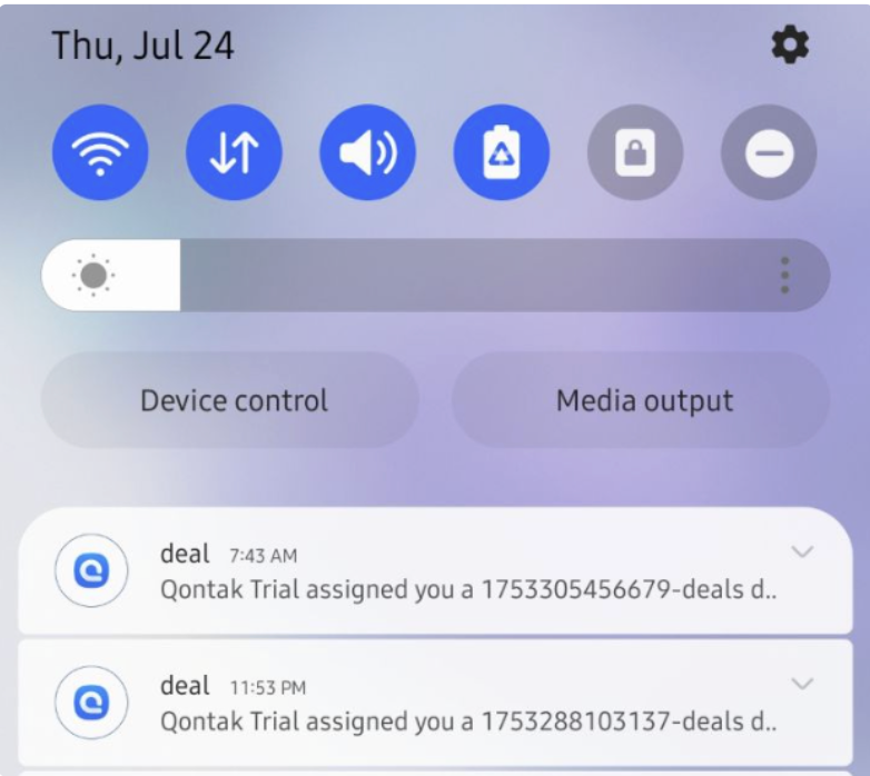 Push Notification akan selalu dikirim meskipun user sedang aktif dan/atau tidak aktif di halaman Qontak Web CRM dan Qontak Mobile CRM.