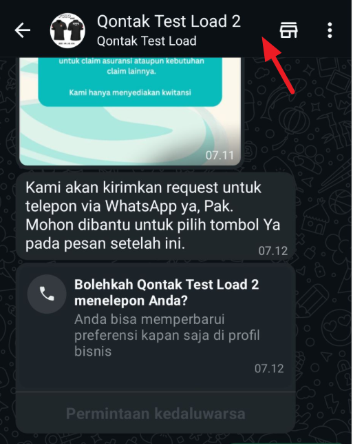 Sistem akan memeriksa apakah terdapat percakapan aktif dengan jenis Marketing, Utility, Authentication, Service, atau Free Entry Point sebelum mengirimkan permintaan izin panggilan.