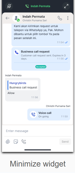 Tampilan jika dari sisi Agent melakukan minimize call widget. |