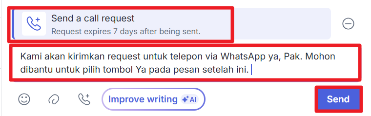 Sebelum dapat mengelola WhatsApp Call Outbound, Anda perlu melakukan pengajuan panggilan terlebih dahulu guna memastikan ketersediaan customer dalam melakukan panggilan tersebut. Berikut langkah-langkahnya.