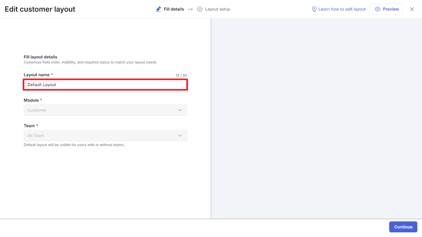 Layout Default View tidak dapat dihapus oleh siapa pun, termasuk Admin. Lalu Anda akan melihat rincian tampilan layout.