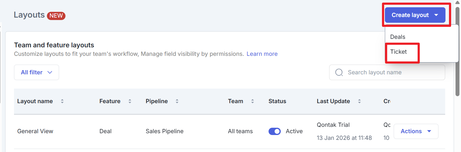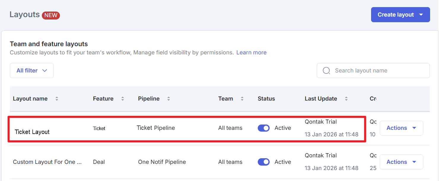 Untuk menjawab kebutuhan tersebut, Mekari Qontak menyediakan fitur Ticket Layout yang memungkinkan penyesuaian tampilan kolom Ticket berdasarkan kebutuhan dan peran masing-masing tim. Dengan fitur ini, setiap tim hanya dapat melihat dan mengelola kolom yang sesuai dengan tanggung jawabnya dalam proses penanganan Ticket.