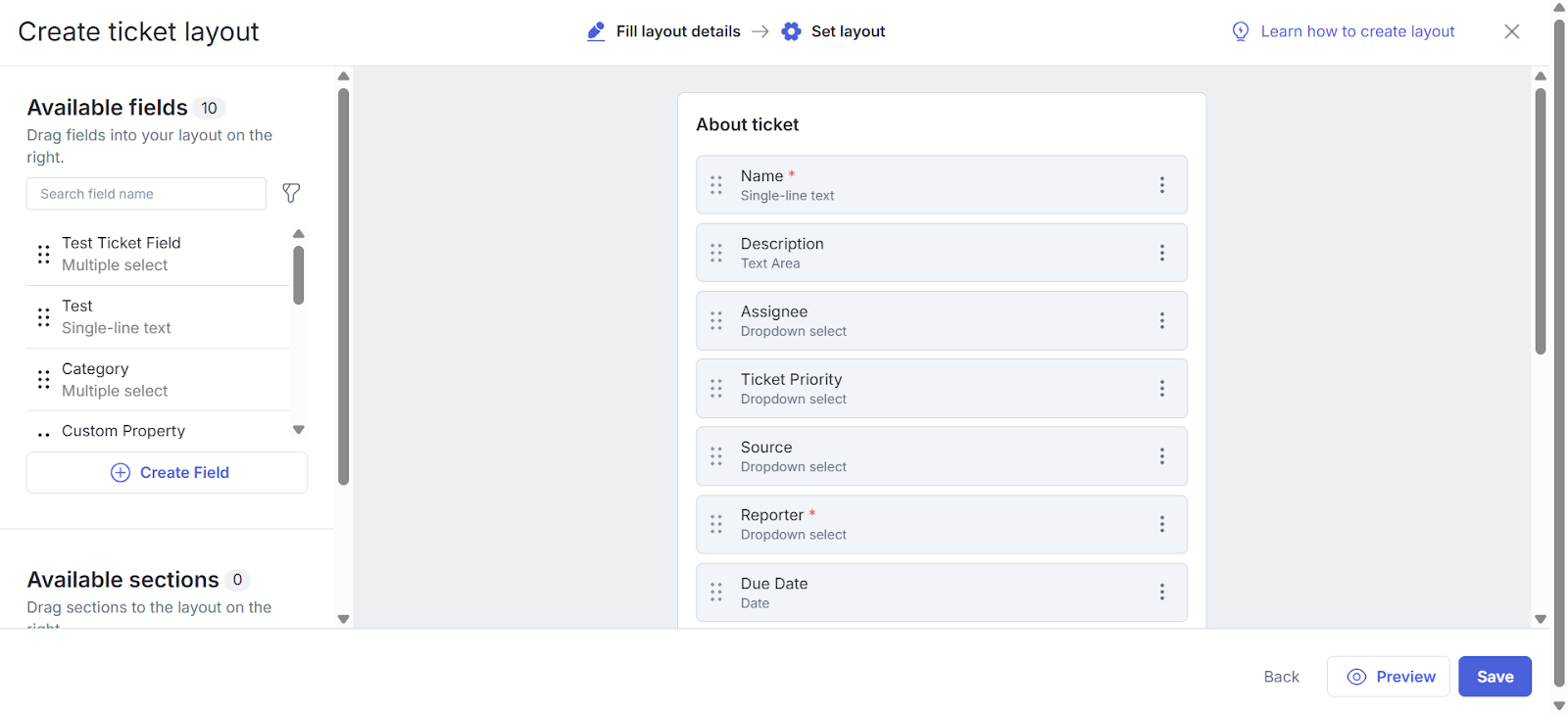 - Pada halaman Layout, klik “Create layout”, lalu pilih “Ticket”.