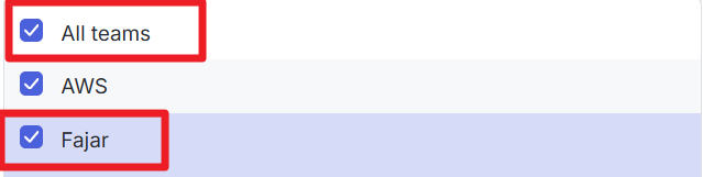 Pada bagian Teams, Anda dapat memilih tim spesifik atau All teams.