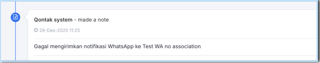 Notifikasi WhatsApp pada CRM hanya dapat dikirimkan jika data pengguna memiliki nomor telepon yang tersedia.