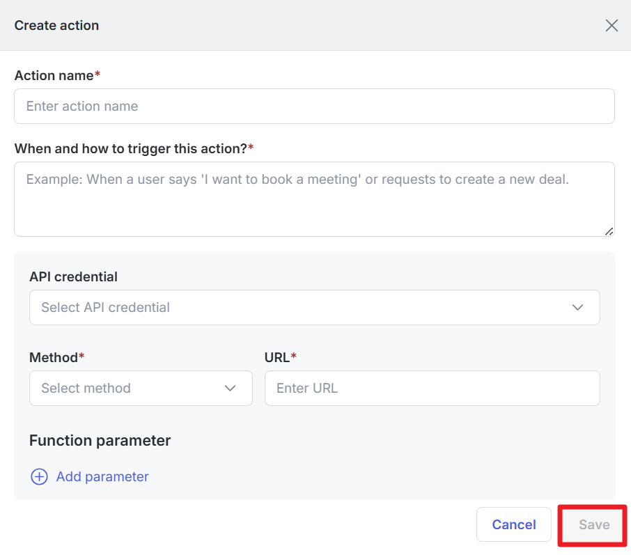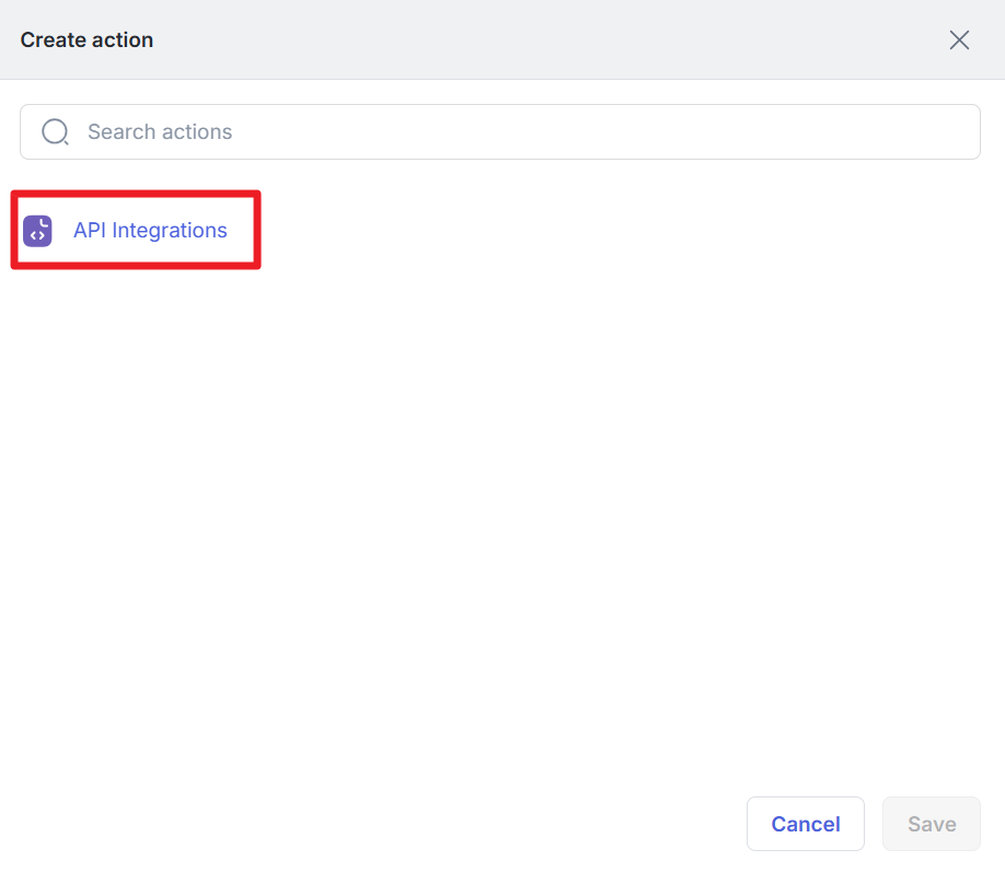 Saat ini, action yang tersedia hanya berupa API Integration. Gunakan fitur ini untuk membuat aksi yang terhubung ke sistem lain bagi AI Agent. Klik “API Integrations”.